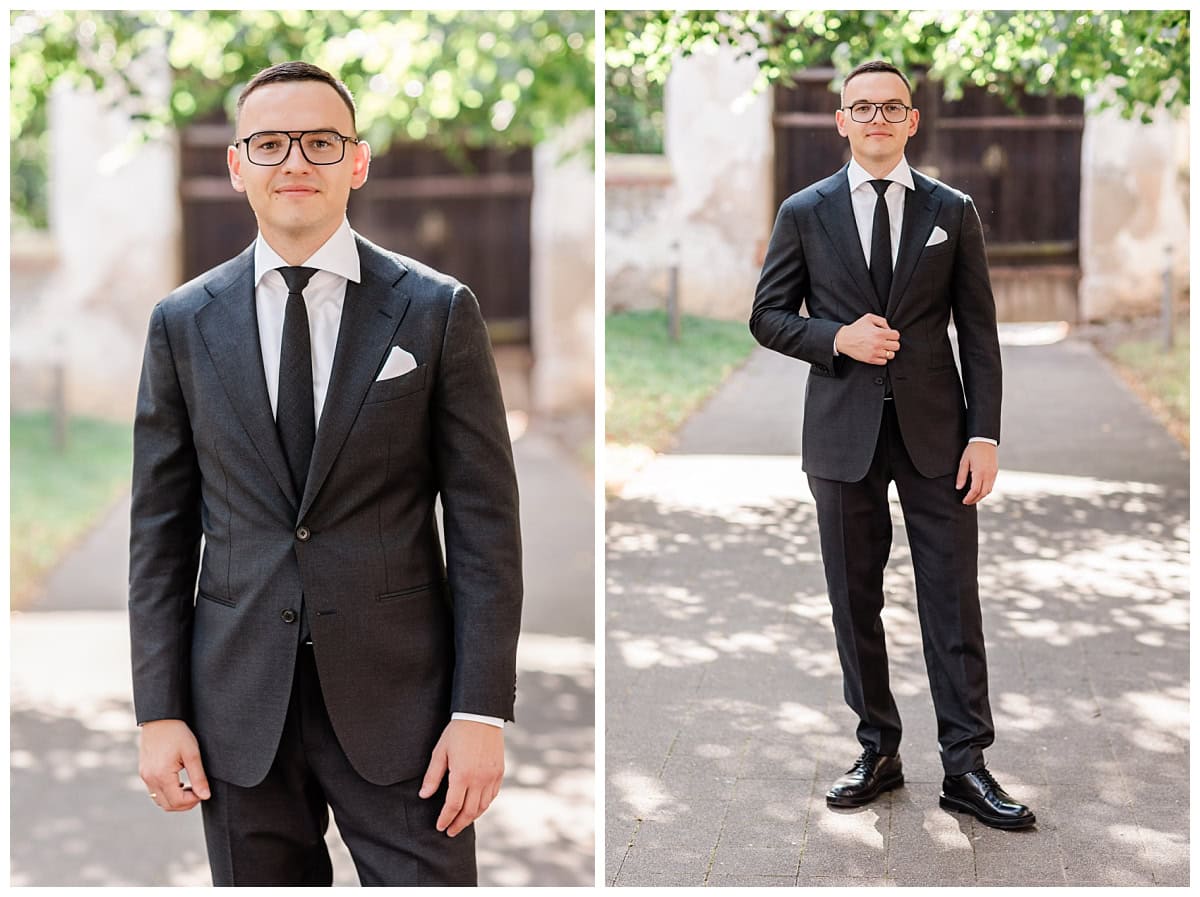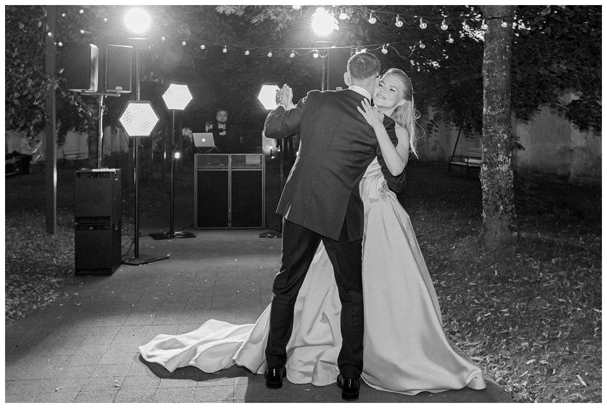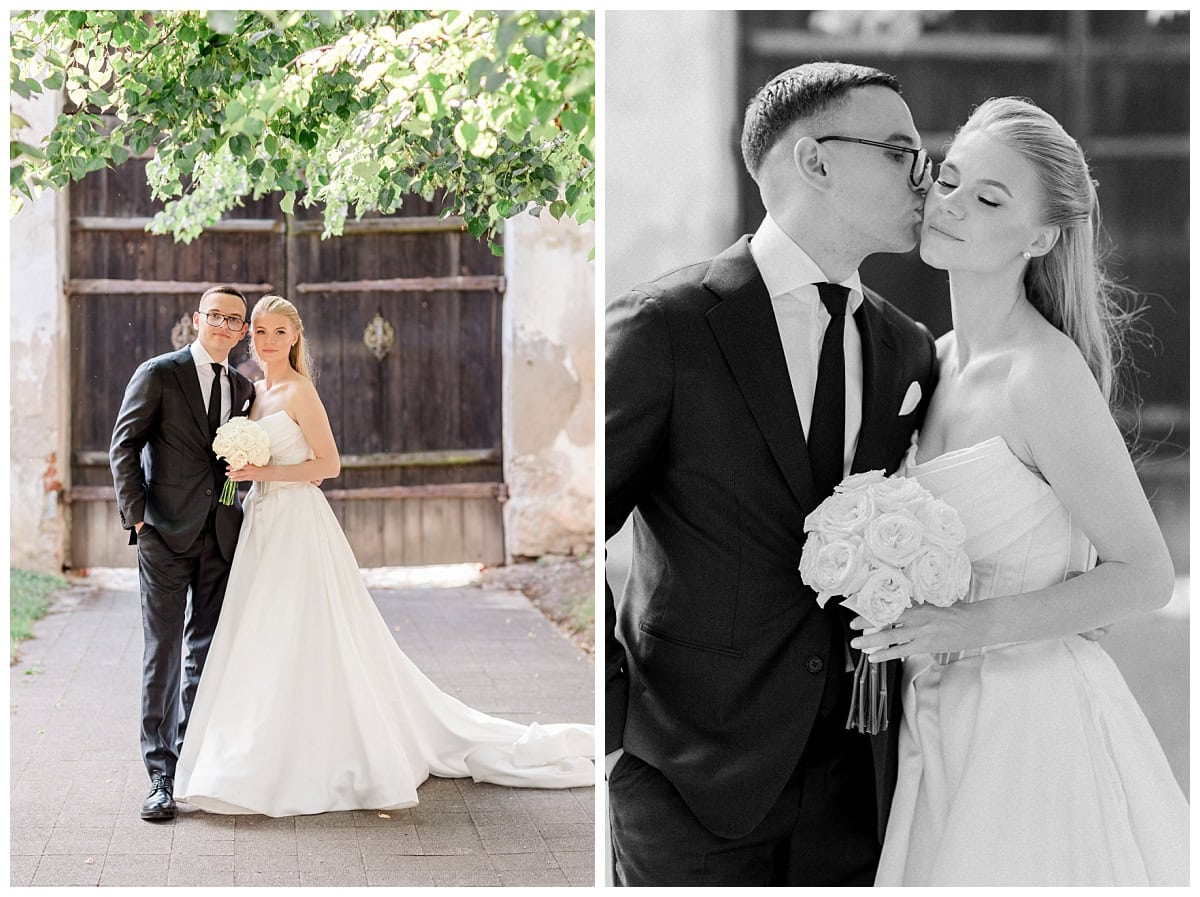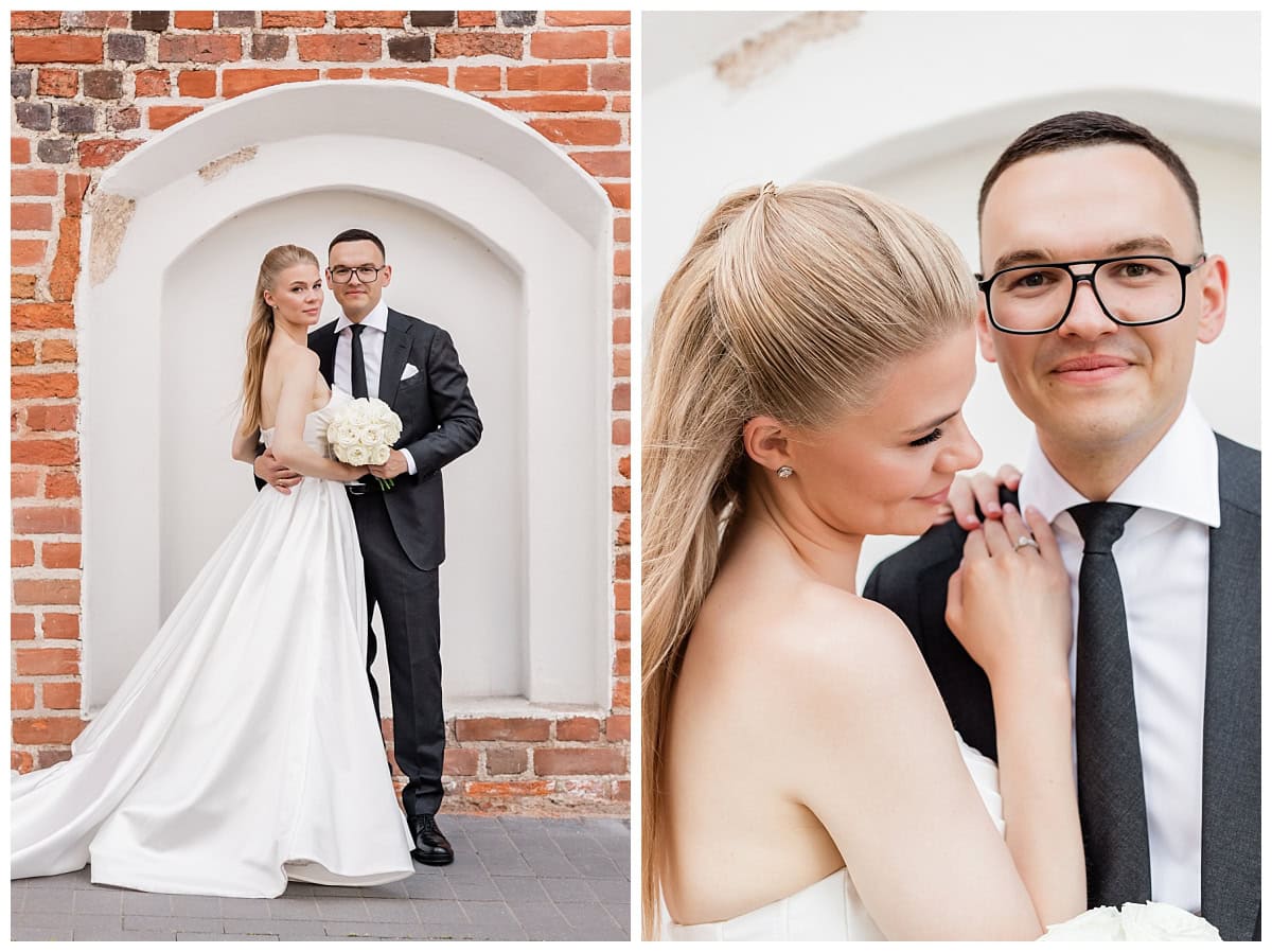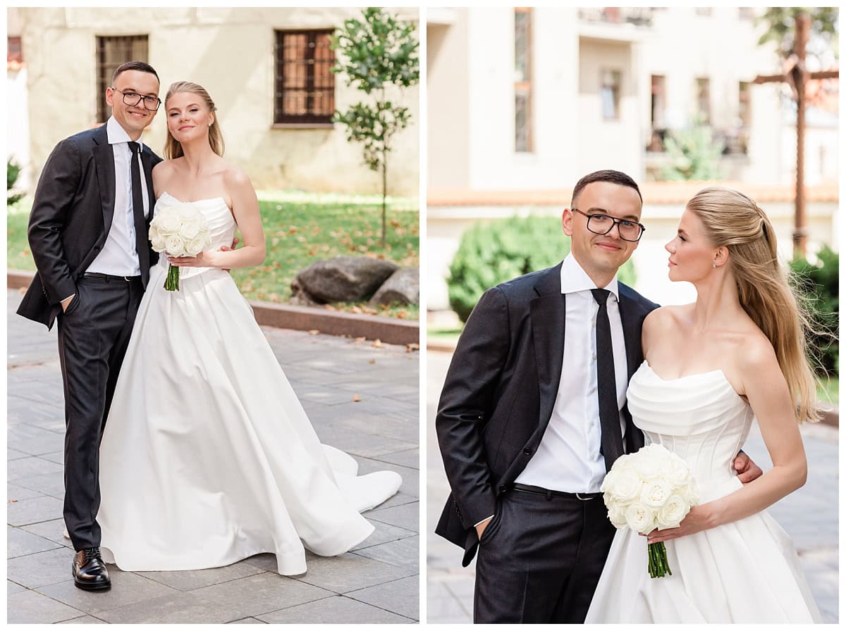 Gabrielė looked radiant in her Anna Sposa gown, her bridal makeup expertly applied by Irma from grožio salonas BLIC, and her hair styled beautifully by Rasa, also from grožio salonas BLIC. Vytenis looked dapper in his Suit Supply suit.