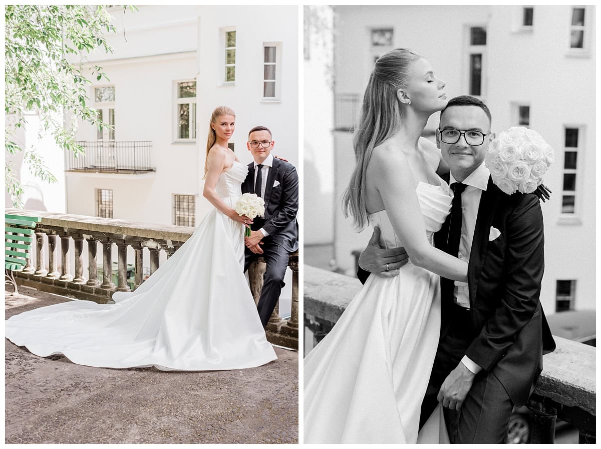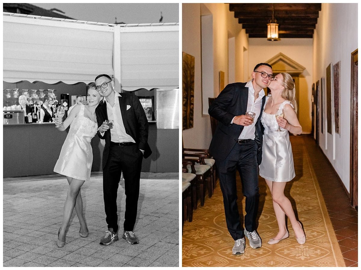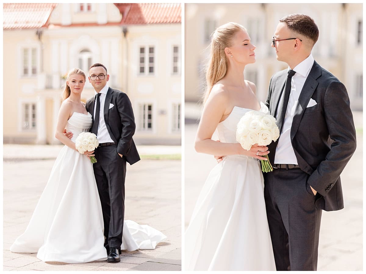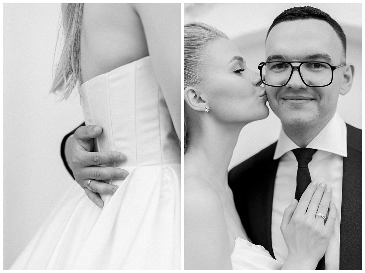 A wedding at the Cathedral in Kaunas is always a breathtaking affair. The magnificence of the Basilica provided a stunning backdrop for their heartfelt ceremony. Following the ceremony, we wandered through the charming streets of Kaunas Old Town, capturing the city’s unique character as a backdrop for their portraits.  We continued the photoshoot in the surroundings of Unity Square. We stopped at Donelaičio restaurant for a refreshing aperol spritz, where I discovered a touching connection to the couple’s history. It was in this very spot that Vytenis had proposed to Gabrielė, and, as they shared, it was also where his father had proposed to his mother. This unexpected revelation added a layer of sentimental significance to the day, making their proposal spot even more meaningful.