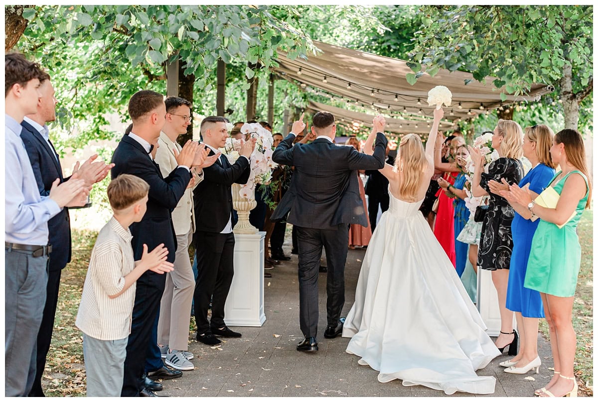 Grįžę į Monte Pacis, jaunavedžiai buvo sutikti šiltomis svečių aplodismentais.  Artimieji ir draugai džiaugėsi jaukia švente, mėgavosi restorano, įtraukto į „Michelin“ gidą, gurmaniškais patiekalais bei Ernesto iš Tūzų organizuotomis pramogomis. Erikos meistriškai sukurtas vestuvių dekoras papildė elegantišką atmosferą.