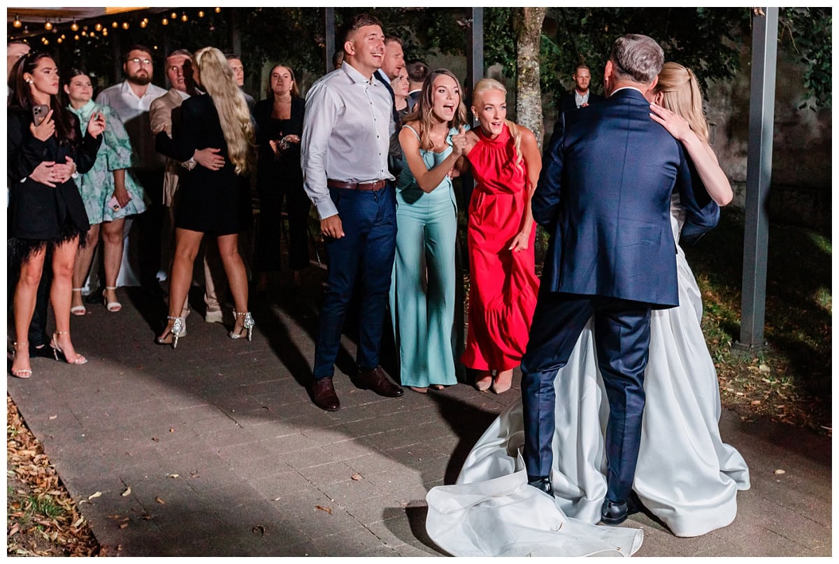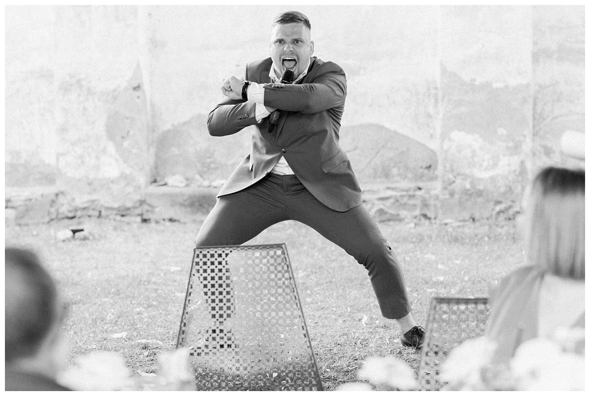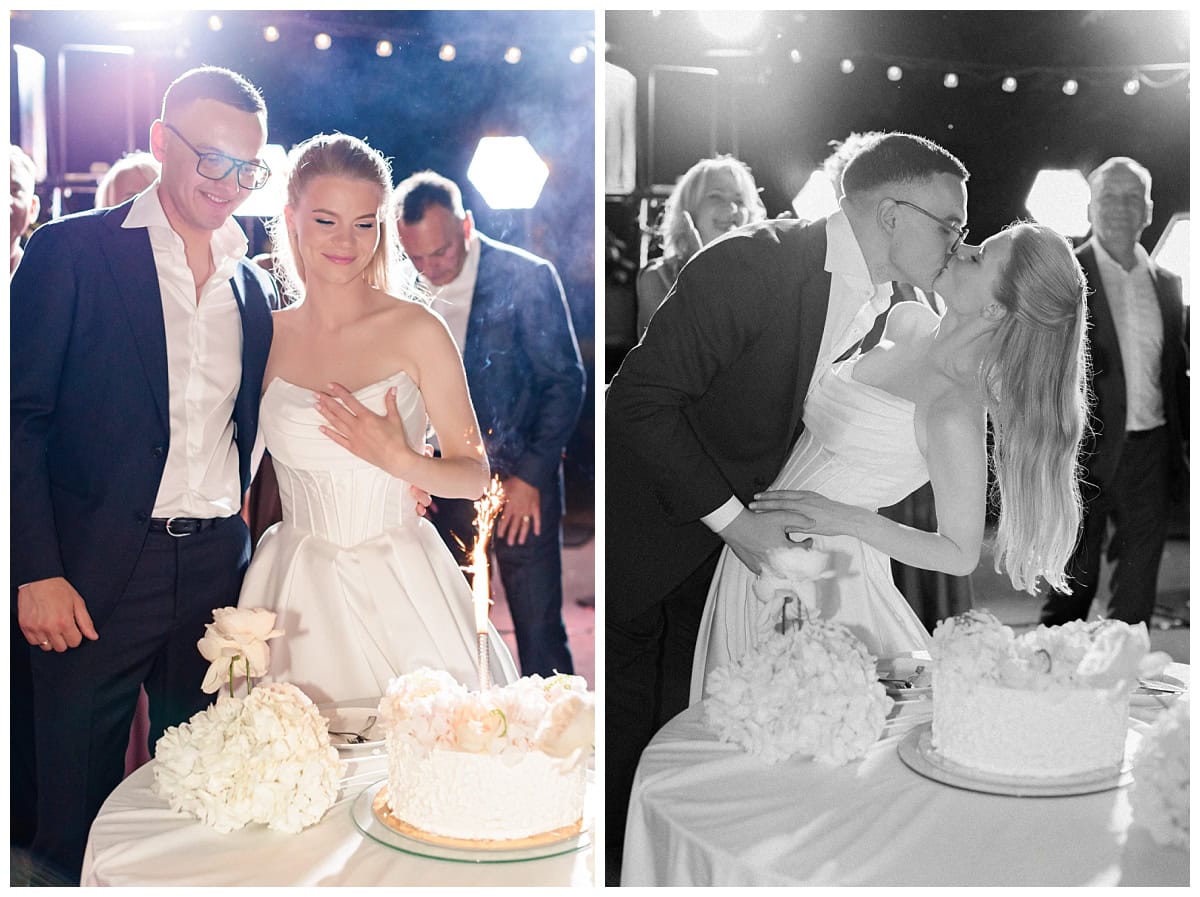 Back at Monte Pacis, the reception unfolded with warmth and laughter. Friends and family gathered to celebrate, enjoying a delicious meal, delightful drinks, and the entertainment of Ernestas from Tūzai. The wedding decor, expertly designed by Erika, perfectly complemented the elegant ambiance.