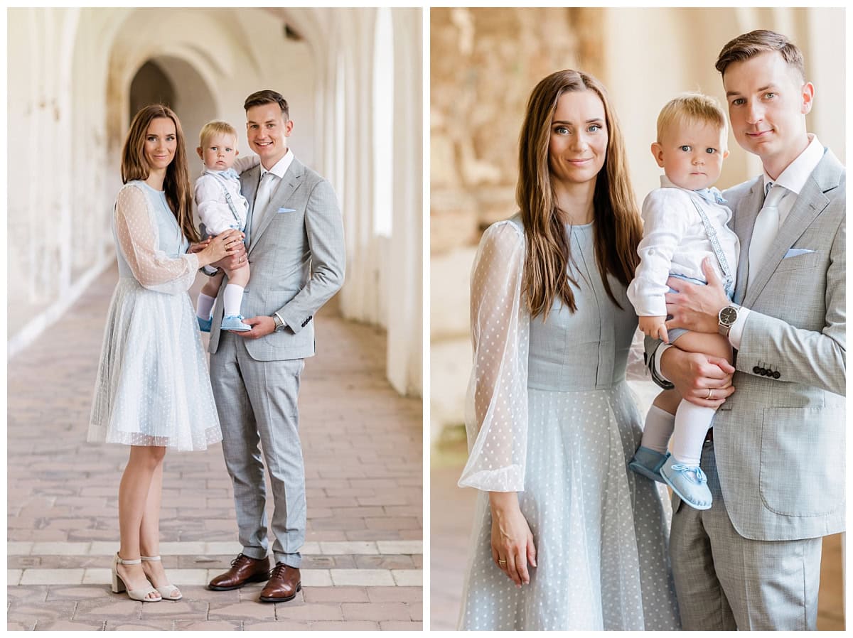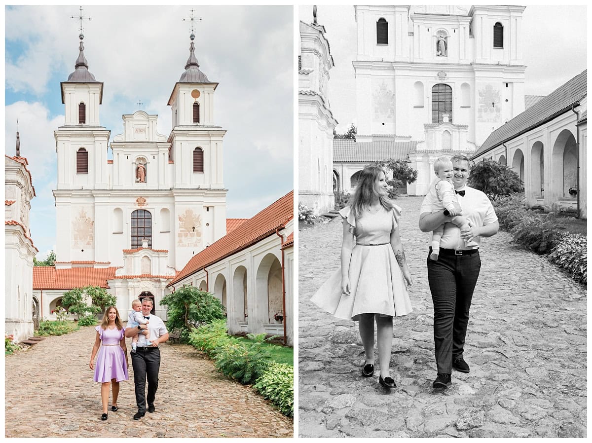 Father Donatas Klimašauskas performed the baptism beautifully. After the heartfelt ceremony, we all headed to the “Gilius” resort. We made a quick stop at the Tytuvėnai Bernardine Monastery for family photos beforehand.