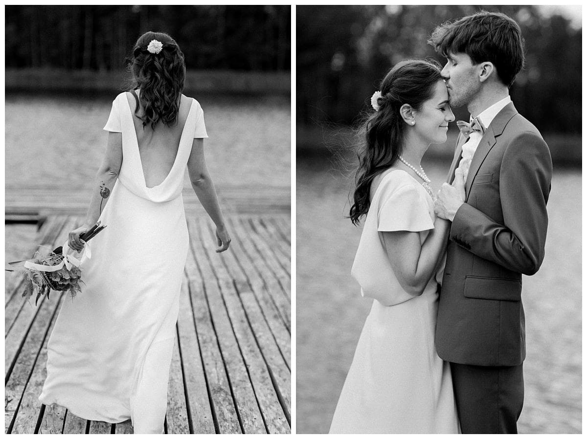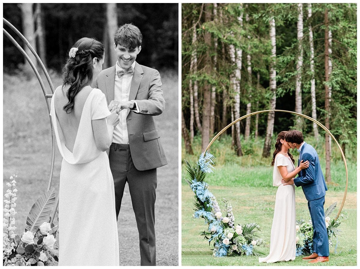 Aš fotografuoti pradėjau jau po pietų. Kaip gerai, kai jaunieji pasirenka kuo vėlesnį ceremonijos laiką. Taip, jiems nereikia anksti keltis. Viskas vyko vienoje vietoje, be jokių važinėjimų. Su planuotoja truputį pergyvenome dėl oro, nes ceremonija buvo numatyta lauke. Bet mums pasisakė. Po civilinės santuokos, iškart vyko humanistinė ceremonija, kurią vedė Lukas iš Taip kitaip. Jaunieji pasirinko ceremoniją su juostomis, priesaika vyko dialogo forma, jų pačių sugalvota, lietuvių ir prancūzų kalbomis. Buvo labai jautru. Po ceremonijos, fotosesijai pasirinkome miškelį, nuėjome prie ežero – tiesiog pabūti. Po fotosesijos, jaunųjų jau laukė artimieji ir draugai ir nepakartojama degustacinė vakarienė!