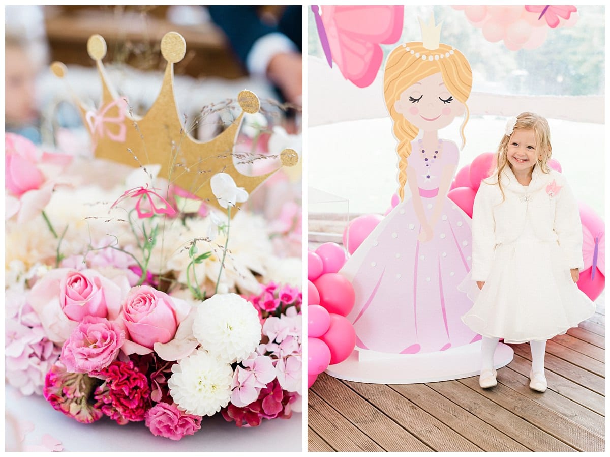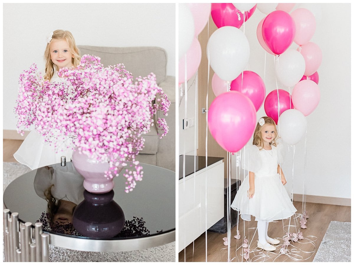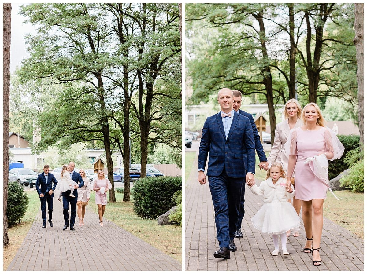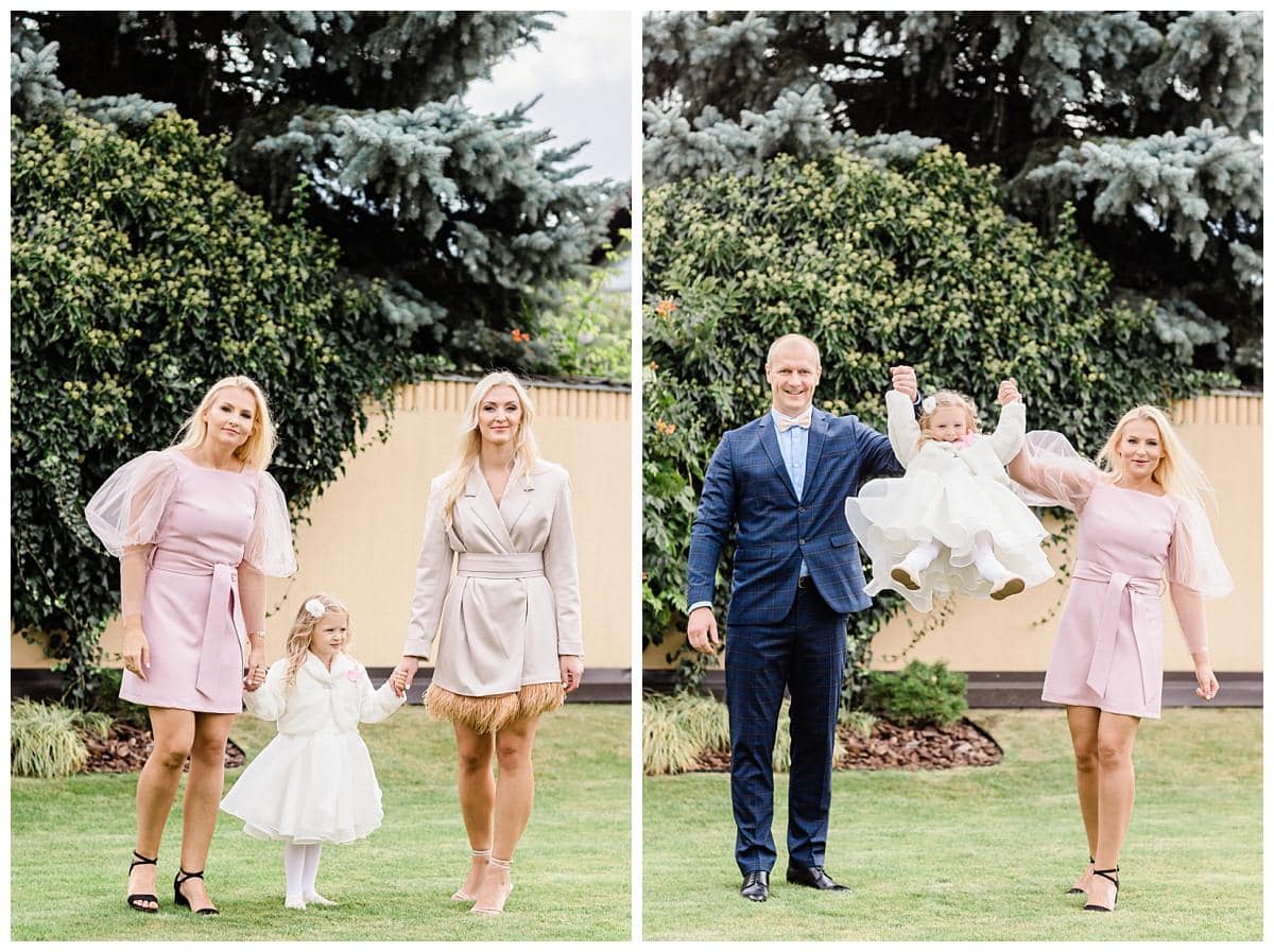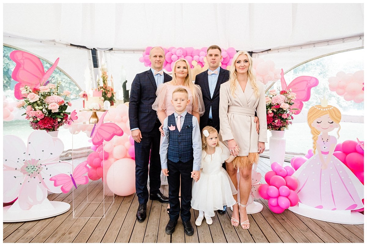 The baptism of Kotryna took place in mid-September at the Kačerginė St. Anne’s Chapel. The preparations were carried out at the family home, and after everyone was ready, they proceeded to the cozy church surrounded by pine trees. The baptism ceremony was beautiful and enjoyable, and after it ended, they headed to the conservatory restaurant at Raudondvaris Manor for the reception. The celebration was already set up with a dome decorated in a princess theme, and everyone had a wonderful time.