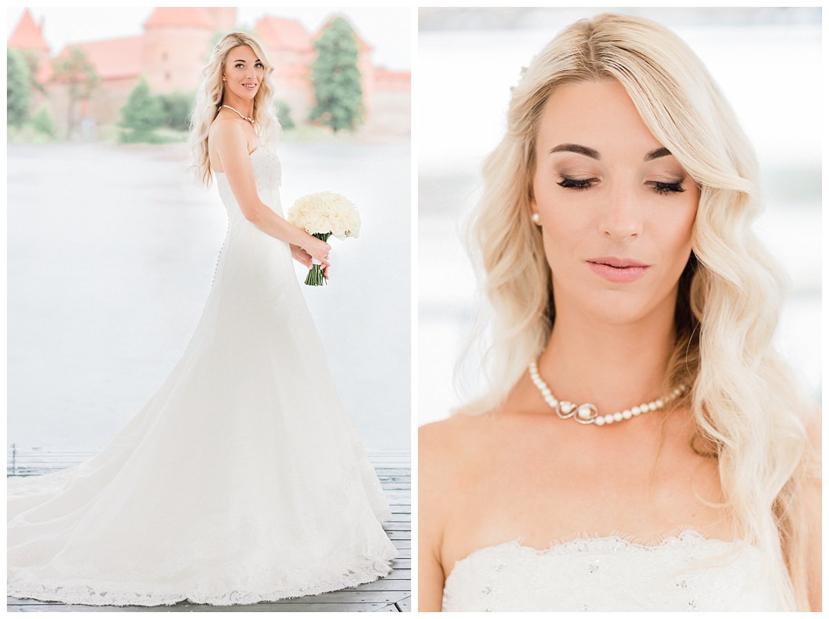 I started taking pictures in the afternoon, and I was glad that the couple had chosen a later ceremony time, which meant they didn’t have to wake up too early. However, on my way to Trakai, I noticed approaching clouds. The bride had been checking the weather all morning, as the forecast had predicted light rain. Unfortunately, the forecast was incorrect, and it rained heavily instead.