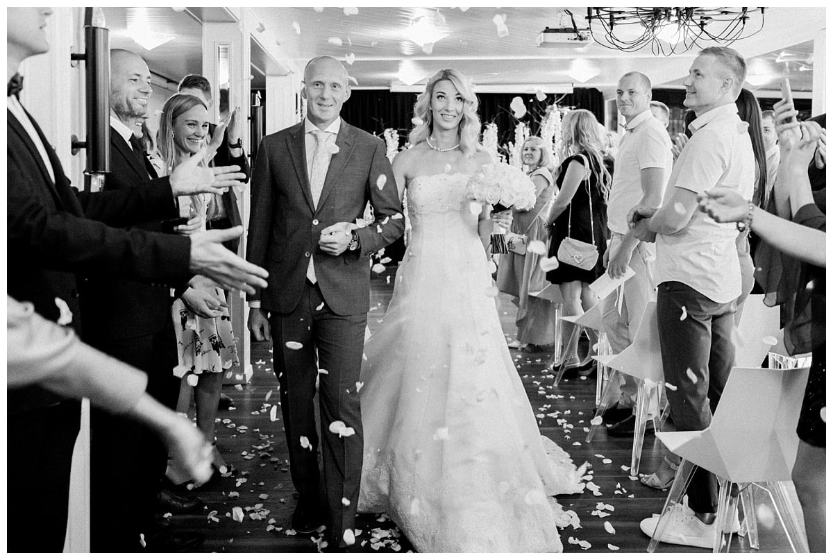 The couple were former colleagues and met at work. Milda is absolutely simple. She is not the type of girl who dreamed of a wedding all her life and knew exactly what kind of wedding she wanted. For her, the main thing is to finally take the plunge and get married, and the rest is just details. Mindaugas is patient, having waited three years for the bride to decide on a wedding date. He is not a fan of taking pictures, but he is very sporty and crazy about water and all water sports. That’s why they live by the lake, and why the wedding took place in the Apvalaus stalo klubas, which is also included in the list of the 30 best restaurants in Lithuania every year. Milda and Mindaugas enjoy walking, doing sports, traveling, and spending their free time together. However, they never cook together.