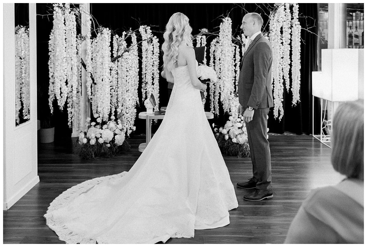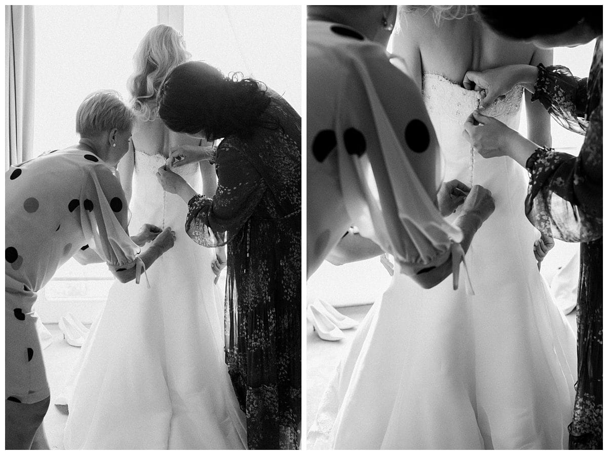 As the bride got ready, she watched from the window as the whole team quickly moved the ceremony from the terrace on the water to Bonas Hall due to the rain. Despite fallen trees blocking the path of the master of ceremonies, the wedding still took place.