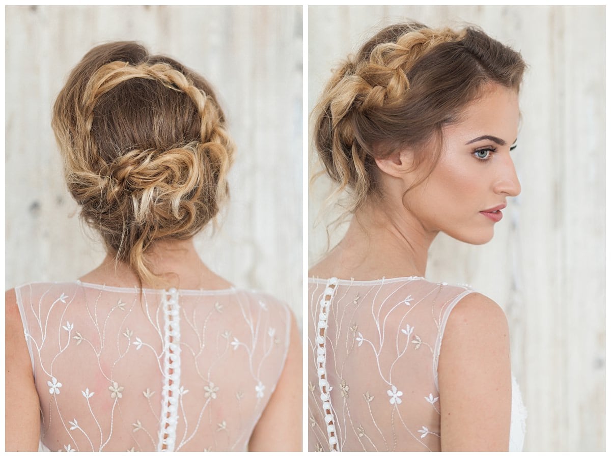 Romantiškam įvaizdžiui labiausiai tinka rožinių atspalvių makiažas. Pagrindiniai akcentai – aksominės koralų spalvos lūpos, persikų atspalvio skaistalai bei švytinčios odos efektas. Netvarkingos natūralios garbanos, susegtos į kuodą su pynimo elementais, suteikia nuotakai romantiškumo.